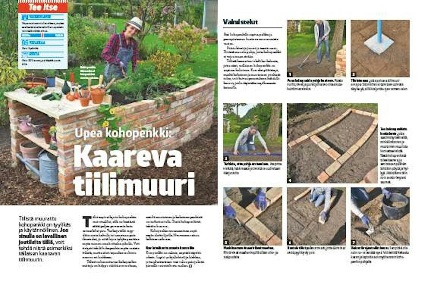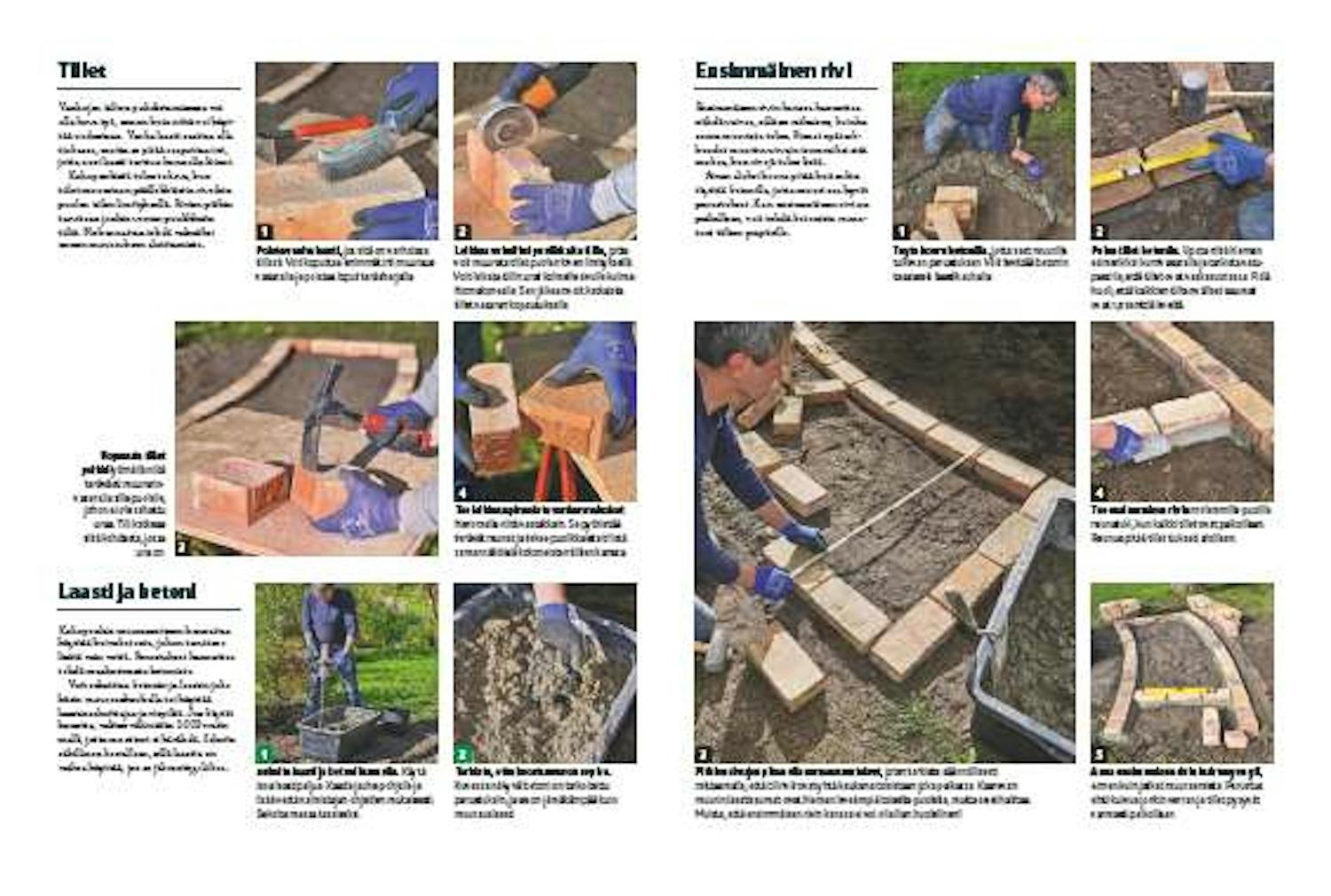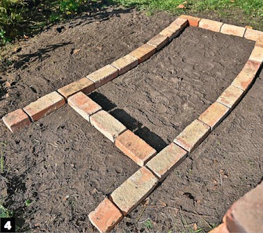 Tiilistä kannattaa tehdä koeladonta, jotta näet, millainen kokopenkki on sopivan kokoinen. Kun olet päättänyt, minkä kokoinen ja muotoinen penkistä tulee, voit kaivaa perustuksen kohdalle kourut, jotka täytetään myöhemmin betonilla.