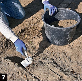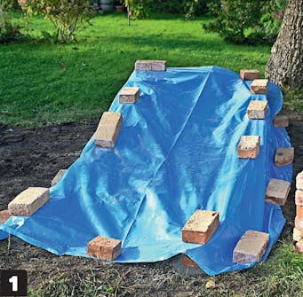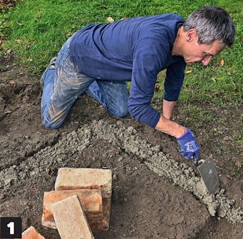Etsi kohopenkille sopiva paikka ja pane pintamaa kuntoon muuraamista varten.