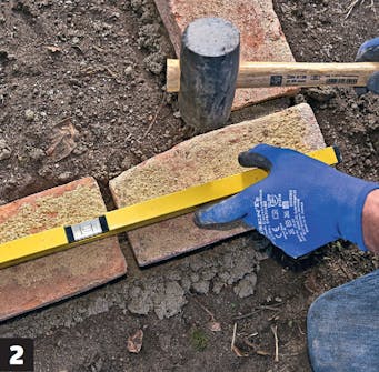 Tiivistä maa, jotta painava tiilimuuri ei vajoa. Sitä varten ei tarvitse vuokrata tärylevyä, sillä käsijuntta ajaa saman asian.