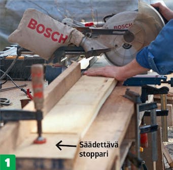 Sahaa laudat. Asenna pituusrajoitin sirkkelin toiselle puolelle ja sahaa laudat sen avulla, jotta niistä tulee varmasti yhtä pitkät.