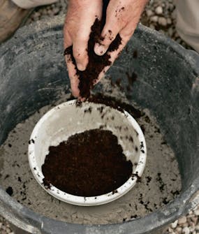 Sekoita betoni. Sekoita 1 osa kasvuturvetta 3 osaan 0,4 mm:n soraa ja yhteen osaan sementtiä. Kasvuturve hienonnetaan muoviastiaan. Poista suurimmat paakut.
