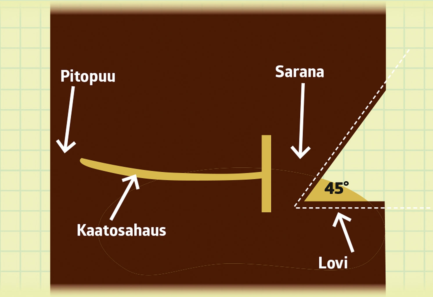 - Pitopuu: Jätä sahaamatta kapea kaistale loven vastapuolelta. Puu kaatuu vasta, kun sahaat pitopuun poikki.