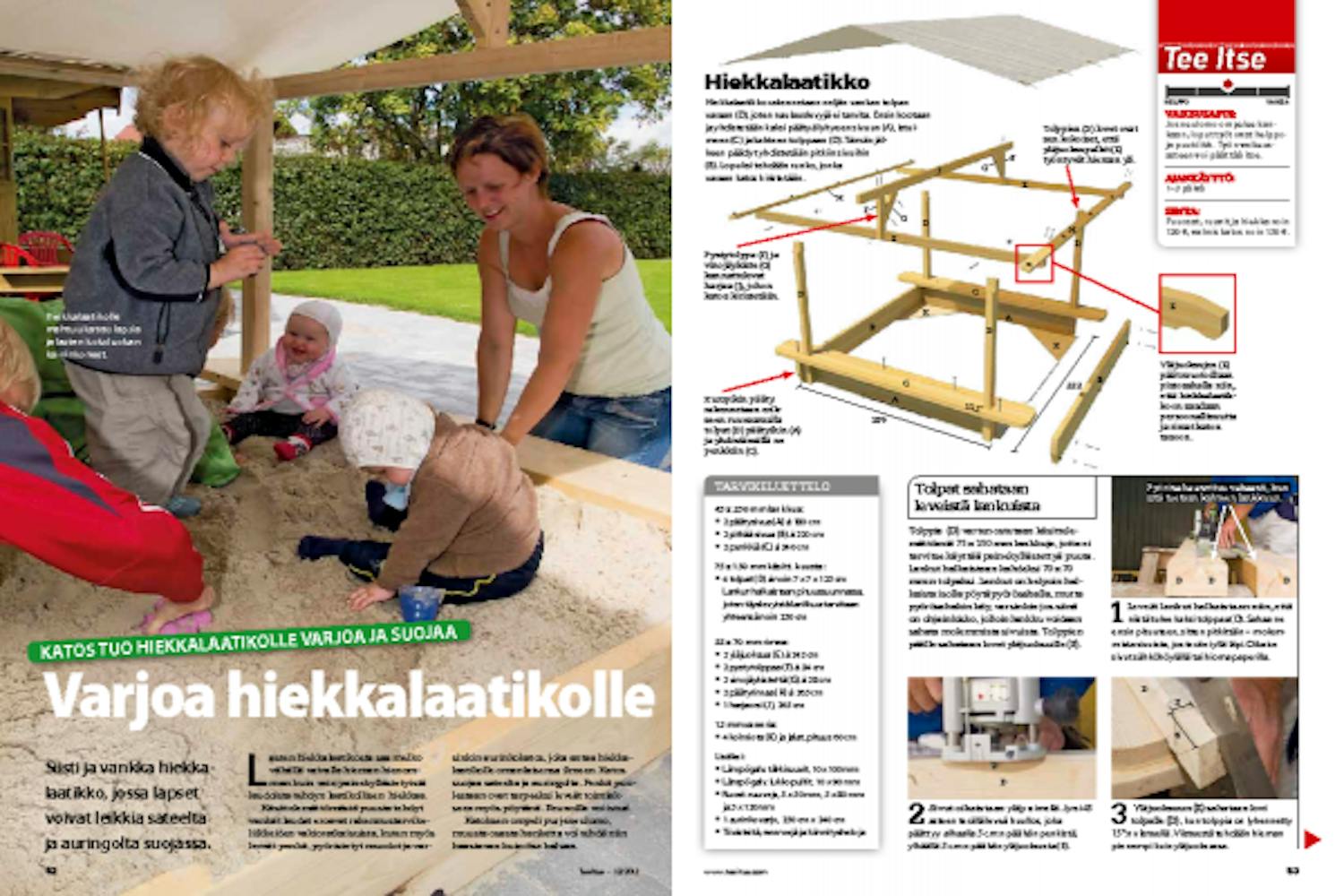 Sivut ja tolpat yhdiste-tään hiekkalaatikoksi