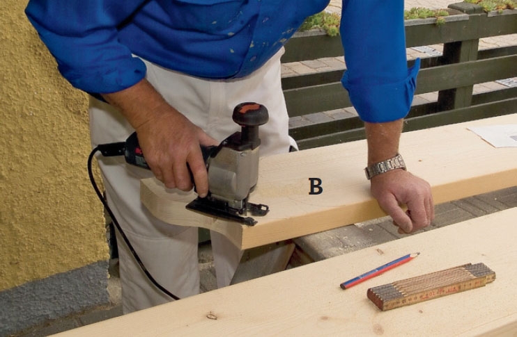 Pitkät sivut (b) sahataan pistosahalla kaavan mukaan. Lyhyihin sivuihin (A) sahataan vastaavat muodot.