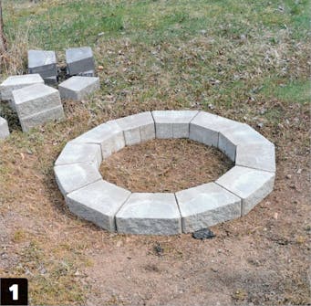 Tee kivistä koeladonta ja päätä ympyrän paikka. Tämä ympyrä tehdään 12 kivestä, joiden koko on 300x200x100 milliä. Merkitse ääriviivat, ota kivet pois ja kaiva kuoppa.