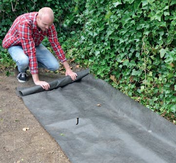 Levitä kuitukangas (J), kun olet oikaissut maan pinnan. Varmista, että kuitukangas kattaa myös kaivuualueen reunat, mieluummin liikaa kuin liian vähän.