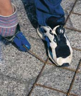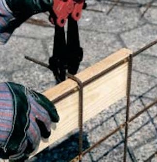 Kaarisäleikkö: Kaksi kolmionmuotoista pylvästä ja kolmionmuotoinen yläosa sidotaan yhteen sidos- ja teräslangoilla.