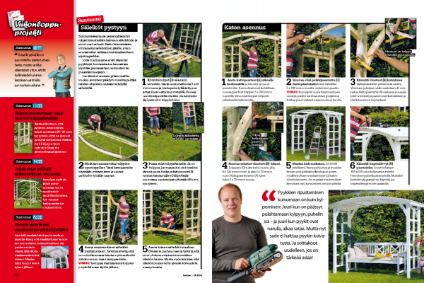 Rutiinihommat vievät harvoin suunnitel-tua enemmän aikaa, mutta odottamatto-mia haasteita tulee aina eteen. Tässä projektissa pitkät kattopaarteet ja lyhyet, kattoa kannattelevat vinotuet voi-vat olla haastavia. Varaa niiden sahaamiseen varmuu-den vuoksi kunnolla aikaa. Hyvä nauhahiomakone voi säästää aikaa!