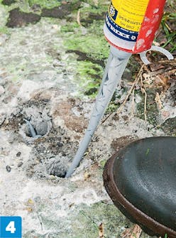 Täytä reiät liimalla 2-4 senttiä vaille täyteen. Puhdista reiät pölystä, jotta voit työskennellä nopeasti. Kaksi komponenttinen liima kuivuu nopeasti.