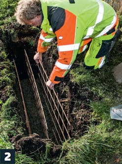 Täytä kuoppa puolilleen ja paina verkot märkään betoniin. Paina raudat tarpeeksi syvälle, jotta ne eivät törrötä betonista ja ruostu pilalle ajan myötä.