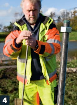 Kiinnitä kierretangon päähän mutteri ja paina se syvälle betoniin. Mutteri ankkuroi kierretangon betoniin uskomat-toman lujasti.