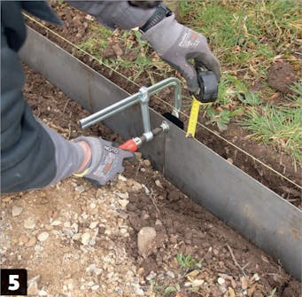 Kaiva reunusta varten niin syvä kouru, että raudat jäävät 3-4 senttiä maan yläpuolelle.
