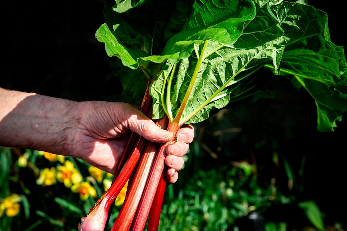 Raparperit poimitaan tarttumalla varren tyveen ja vetämällä ylöspäin.