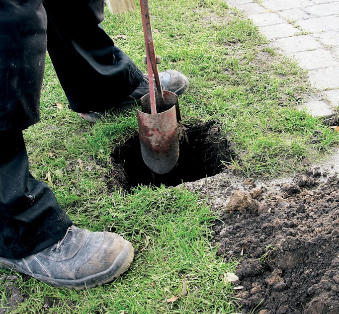 Mittaa tolppien paikat ja kaiva routimattomaan maahan saakka. Kuopan on oltava halkaisijaltaan 10 cm suurempi kuin tolppa, jotta maan saa lopuksi tampattua tiiviiksi tolpan ympärillä.