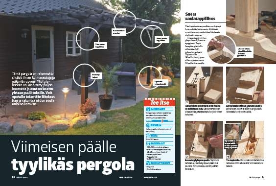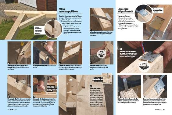 Pergola vakautetaan vinotuilla. Yläpuu ja tolppa yhdistetään toisiinsa vinoilla tappiliitoksilla, joita varten porataan vinot tapinreiät. Vinot tapit tehdään samalla tavalla mutta eri mitoilla kuin suorat tapit.