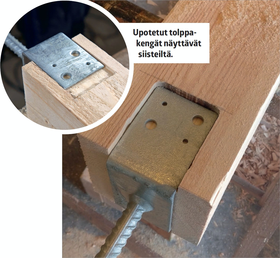 Tolppakengät upotetaan tolppiin, jotta lopputulos näyttää mahdollisim-man tyylikkäältä.
