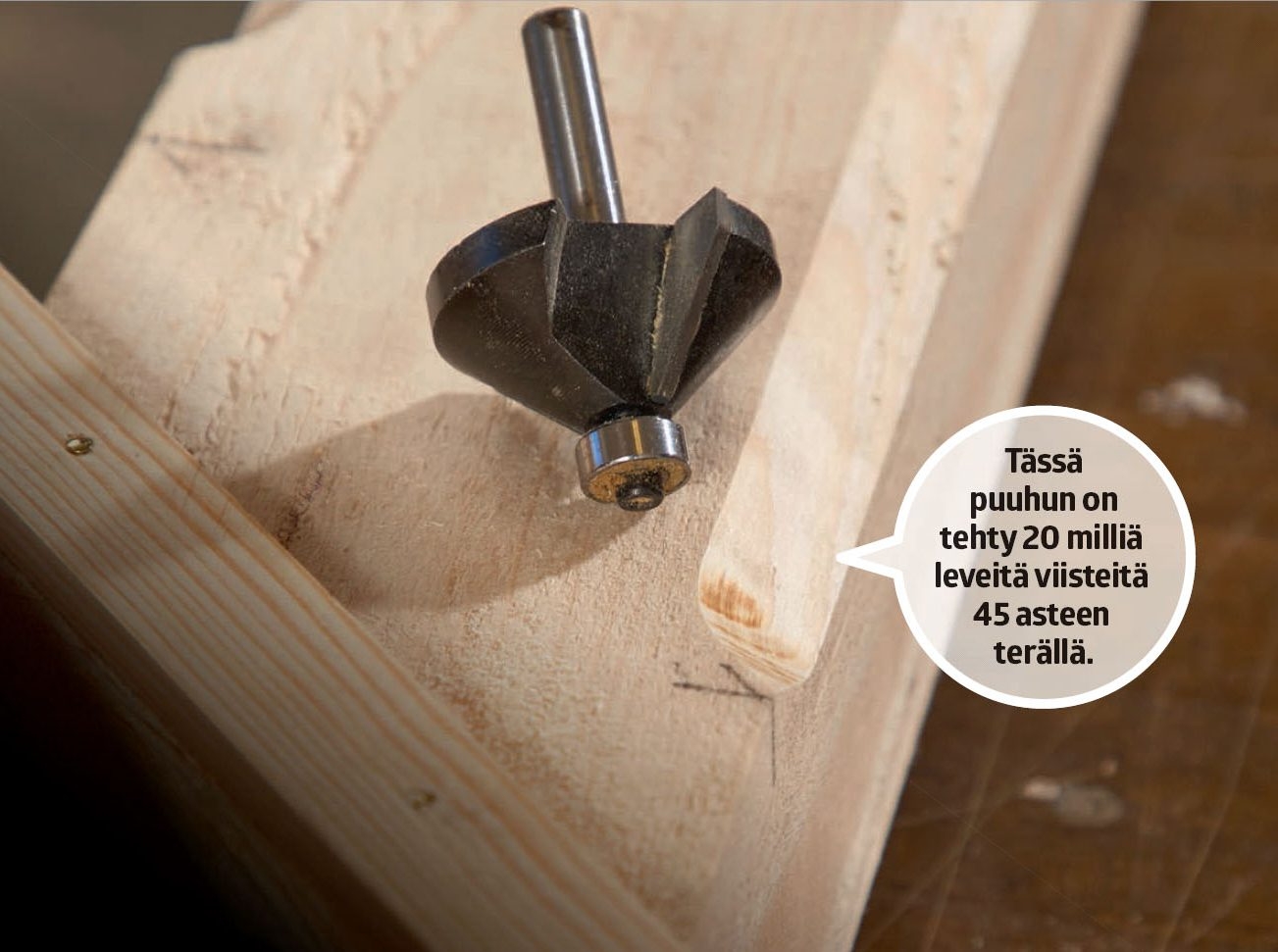 Tolpan nurkkiin kannattaa tehdä 1-2 milliä leveät viisteet. Se poistaa tikut ja terävät nurkat ja parantaa maalin tarttumista.