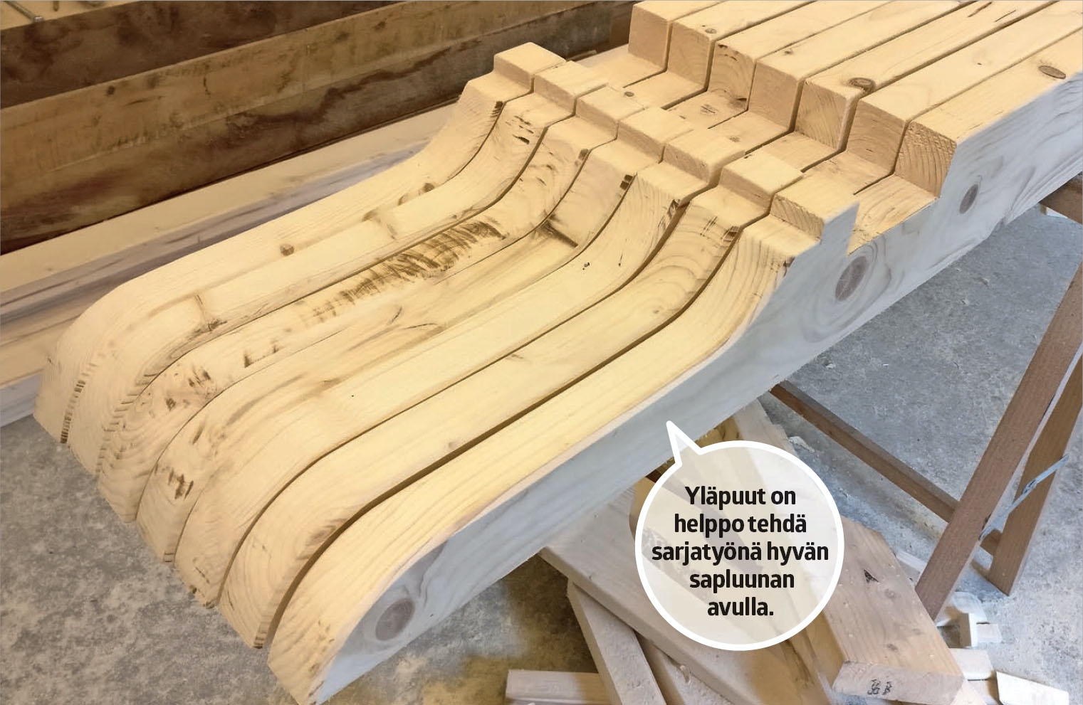 Pergolan yläpuiden koristeleik-kauksille ei ole rakenteellista syytä. Ne vain näyttävät hyviltä. Voit jättää yläpuut myös tasapaksuiksi.