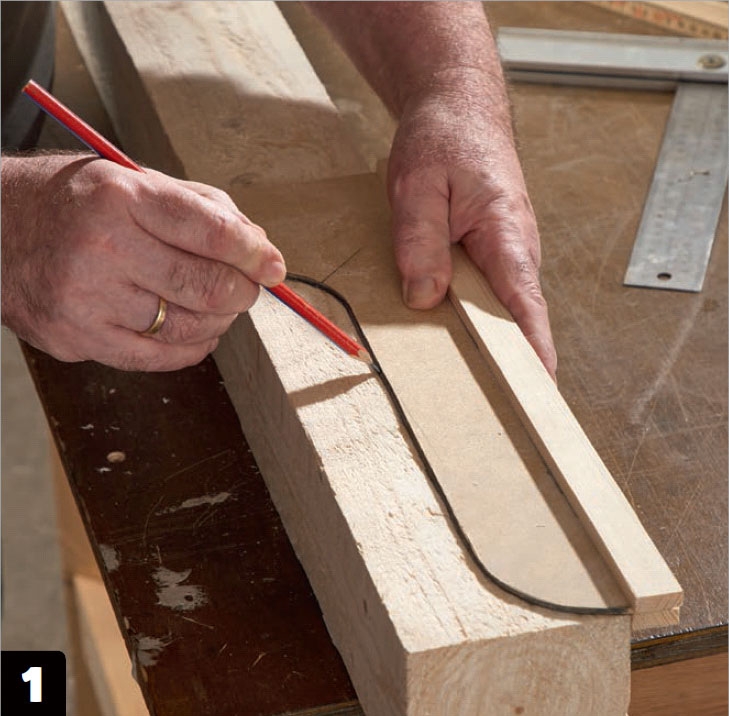 Piirrä sahauslinjat sapluunan avulla. Voit tehdä sapluunan esimerkiksi kovasta puulevystä. Kiinnitä reunaan ohjain, jotta sapluuna pysyy suorassa puuta vasten.