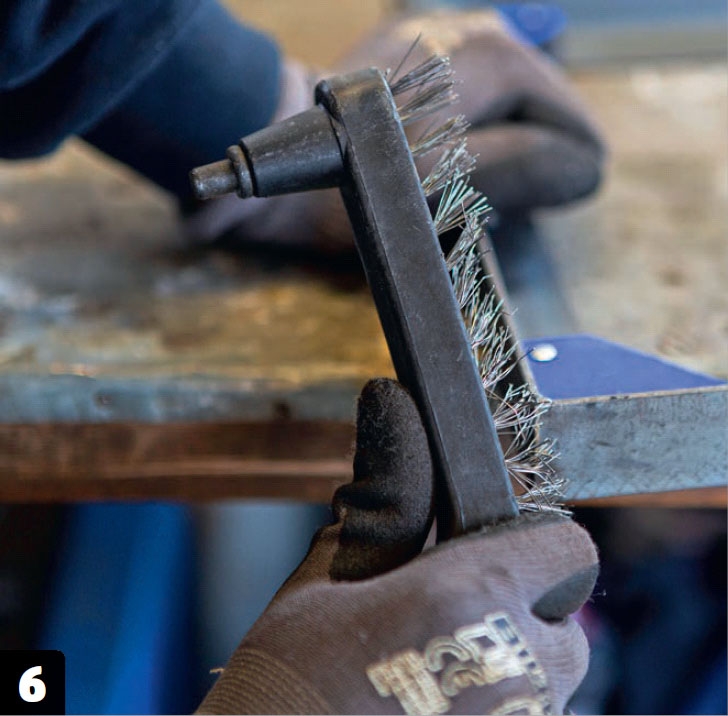 Poista noki ja muut roskat teräsharjalla. Hitsaamisesta syntyy paljon nokea, joka kannattaa poistaa saman tien.