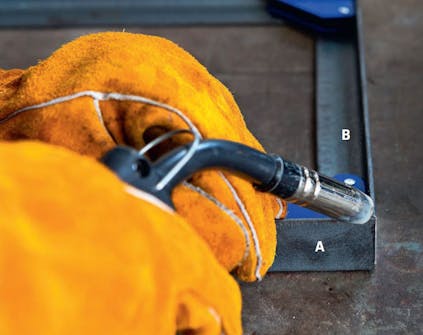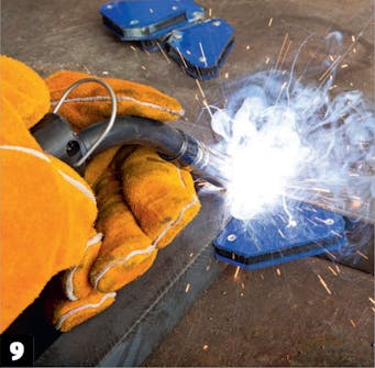 Ota huomioon, että hitsauslämpö voi saada metallin taipumaan. Etene hitaasti ja tarkista, että osat ovat suorassa kulmassa toisiinsa nähden. Jos metalli vääntyy, väännä se takaisin.