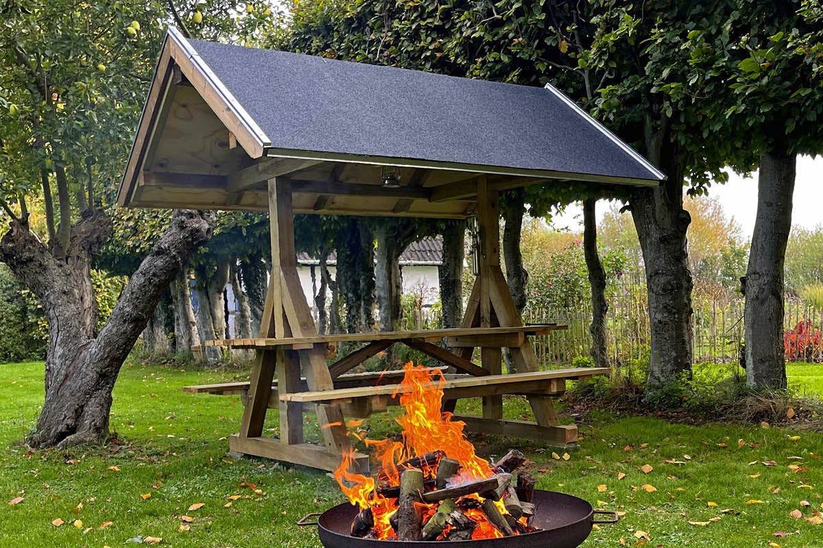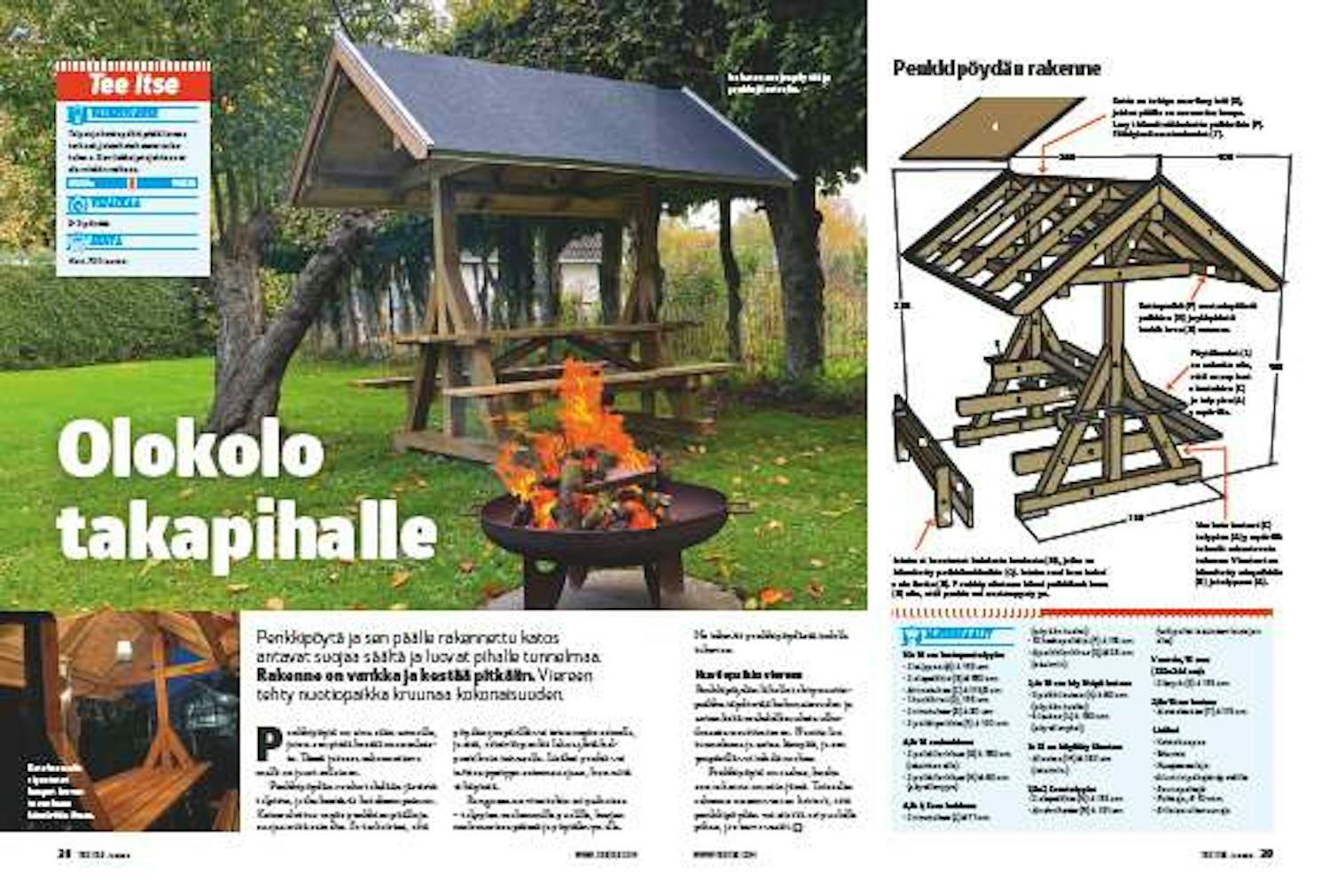 Tolpat ja kattopalkit pitää loveta tarkasti, jotta katoksesta tulee tukeva. Sen lisäksi projektissa ei ole mitään vaikeaa.