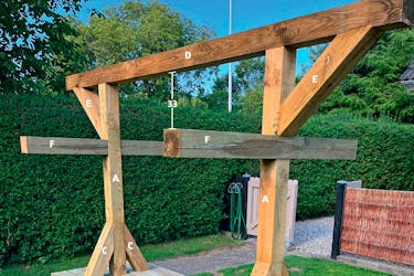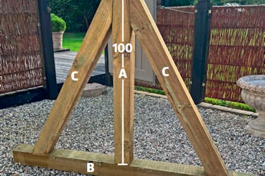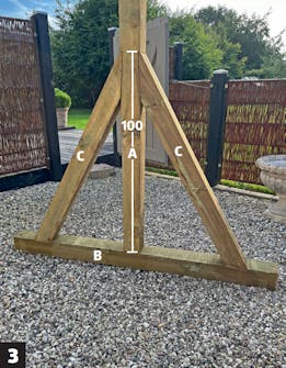 Tee tolpan (A) keskelle kaksi lovea vinotukia (C) varten. Ne tekevät rakenteesta uskomattoman vahvan.