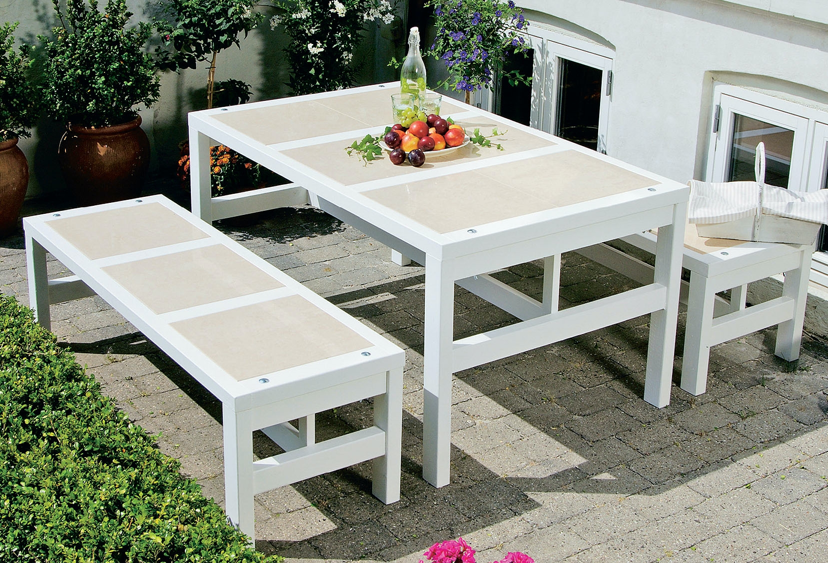 Pöytä ja penkit voidaan tehdä monella eri tavalla. Peilien mitat sallivat myös 40 x 40 cm:n laattojen käytön.