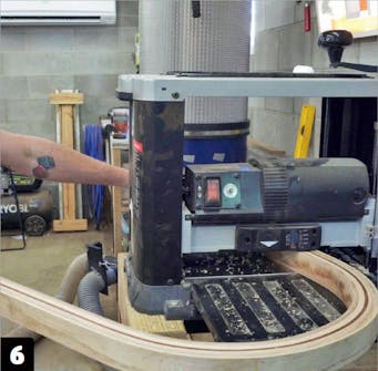 Pyöristä ulkokulma. Käytä esimerkiksi maalipurkkia, jotta kulmasta tulee varmasti pyöreä. Sahaa viivaa pitkin pistosahalla ja hio pinta sileäksi.