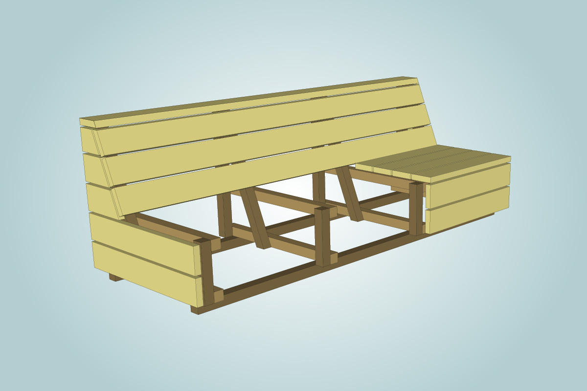 Jos rakennat koko sarjan, joudut tekemään kuusi samanlaista päätyä/selkänojaa: kaksi aurinkovuodetta ja neljä sohvaa varten. Ensimmäiseksi kannattaa rakentaa sapluuna, sillä se säästää aikaa ja varmistaa, että selkänojista tulee suorat.