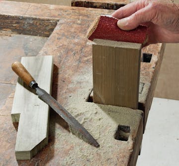 Sahaa osat ja hio niitä hieman. Sahaukset voi tehdä käsisahalla, mutta poikkiviillot syntyvät nopeammin ja tarkem-min katkaisusahalla ja upotukset pisto-sahalla. Hio viillot sileiksi sen jälkeen, kun olet tarvittaessa oikaissut niitä raspilla.