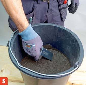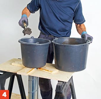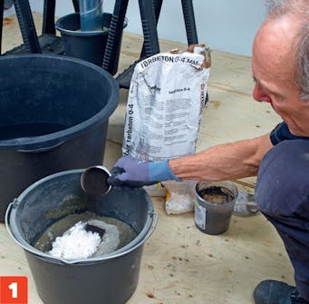 Aloita betonin sekoittaminen kaa-tamalla paljuun vettä ja lisää sementti vasta sen jälkeen. Jätä varalle sekä hieman sementtiä että vettä, jotta voit säätää betonin koostumusta.