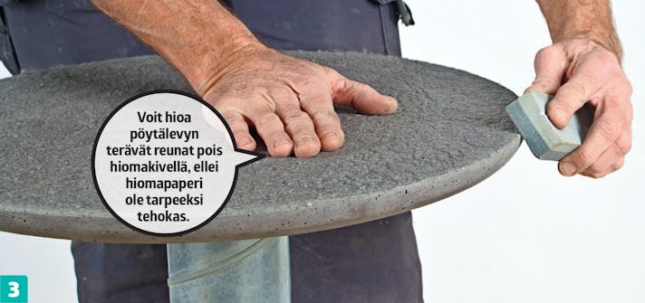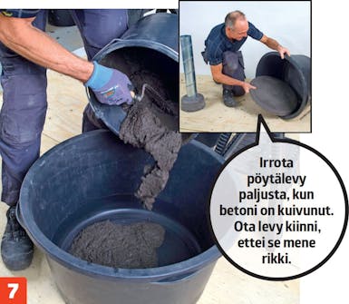 Pura muotti 2-3 vuorokauden kuluttua, kun betoni on tarpeeksi kovaa. Ujuta betoni irti paljusta ja paina varovasti putken päältä.