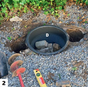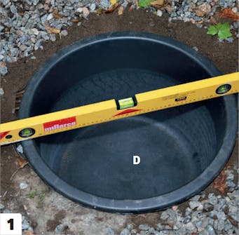 Upota allas maahan. Tässä käytetään laastipaljua, jonka halkaisija on 50 senttiä. Asenna palju vaakasuoraan.