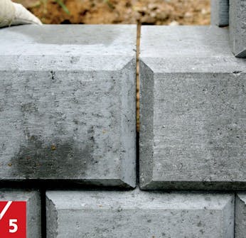 Säilytä 2-5 mm:n saumaväli edetessäsi ensimmäisen rivin kanssa. Maakostean betonin annetaan kovettua pari päivää ennen jatkamista. Limitä seuraava kerros niin, että kivet ovat puoli kivenmittaa päällekkäin. Näin kivet kiinnittyvät tiukasti toisiinsa.