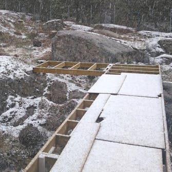 Kuvissa näkyy, kuinka hankalaan paikkaan allasalue tehtiin ja kuinka upea siitä tuli. Se vaati kekseliäisyyttä, paljon erilaisia ja luovia tukirakenteita sekä kolmen kuukauden työn.