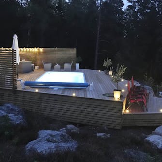 Rullattava terassi on osa paljon isompaa projektia, jossa rakennettiin kokonainen allasalue kallion rinteeseen.