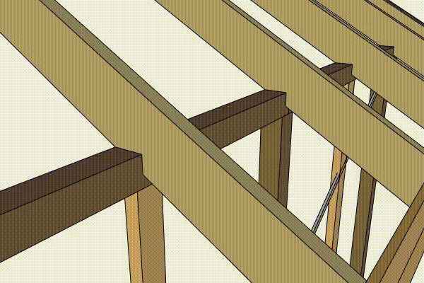 Vaarnapalkkeihin (D) tehdään pienet lovet harjapalkkien ja alapalkkien kohdalle, jotta kattorakenteesta tulee mahdollisimman tukeva ja yhtenäinen.