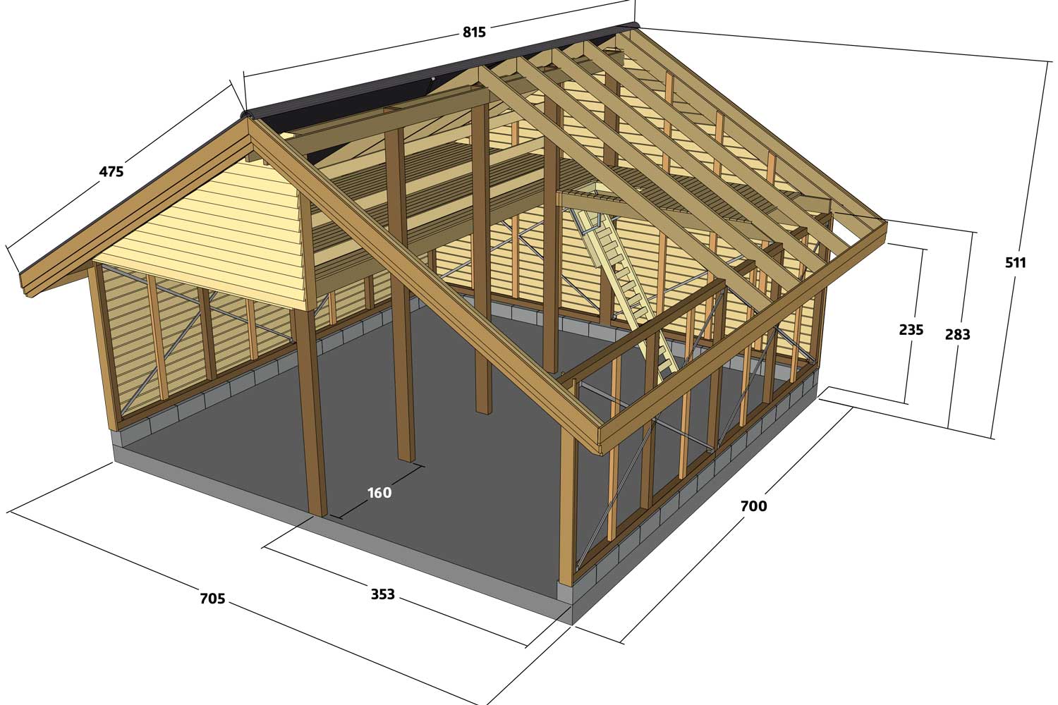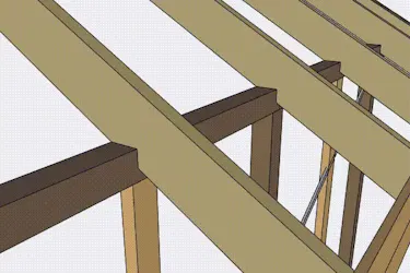 Katto rakennetaan kahden kurkihirren varaan, jotka tuetaan keskeltä viidellä järeällä tolpalla.