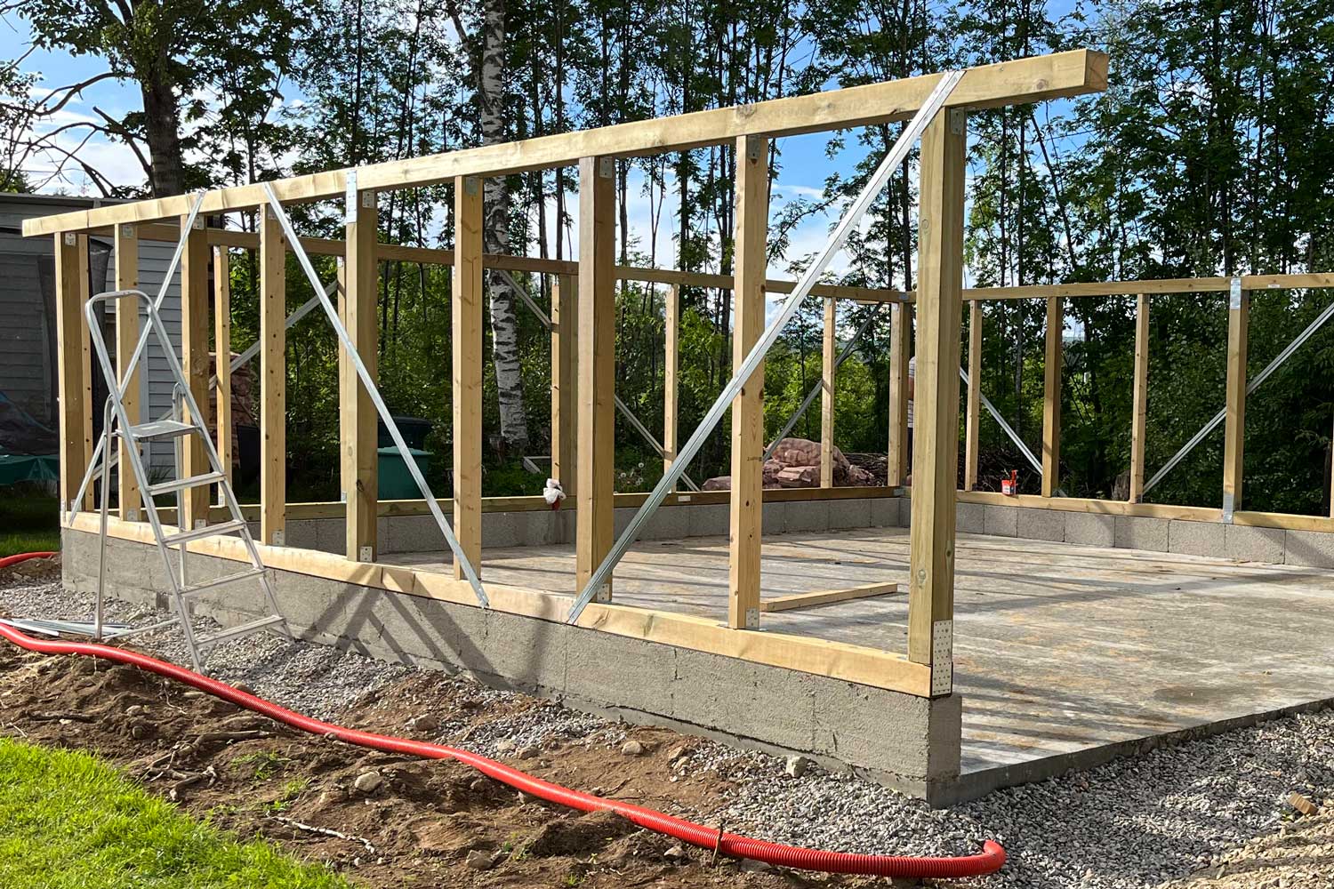 Autokatoksen pohjalle tehdään iso ja tukeva betonilaatta, joka valetaan pikkukivien päälle.