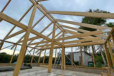 Kun kaikki runkotolpat ovat paikoillaan, on aika tehdä kattorakenne.