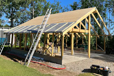 Tähän autokatokseen tehdään peltikatto, mutta voit käyttää melkein mitä tahansa katemateriaalia. Katon kallistuskulma ja aluskate sopivat monille materiaaleille.