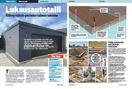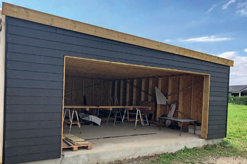 Autotalli maalataan sisältä ja viimeistellään ulkopuolelta yksityiskohtia myöten. Sen jälkeen autotalliin asennetaan tyylikäs ja leveä sähköovi, joka toimii kaukosäätimellä. Autotalliin on vedetty 2,5 mm² sähköjohto sähköauton teholaturille.