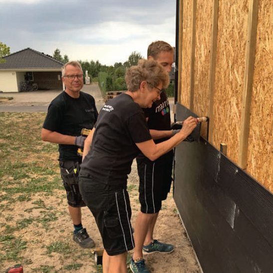 Koolausrimat maalataan mustiksi, jotta ne eivät pistä silmään lautojen välisistä saumoista. Kuitusementtilaudat ruuvataan kiinni rimoihin säänkestävillä ruuveilla.