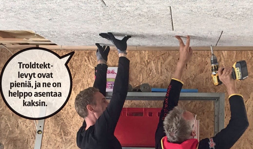 Katto akustiikkalevyistä, osb:stä ja huovasta