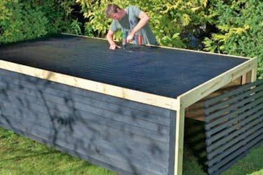 Asenna kattolevyt paikoilleen katto-rimojen päälle otsalautojen väliin. Ruuvaa levyt kiinni rimoihin kateruuveilla.
