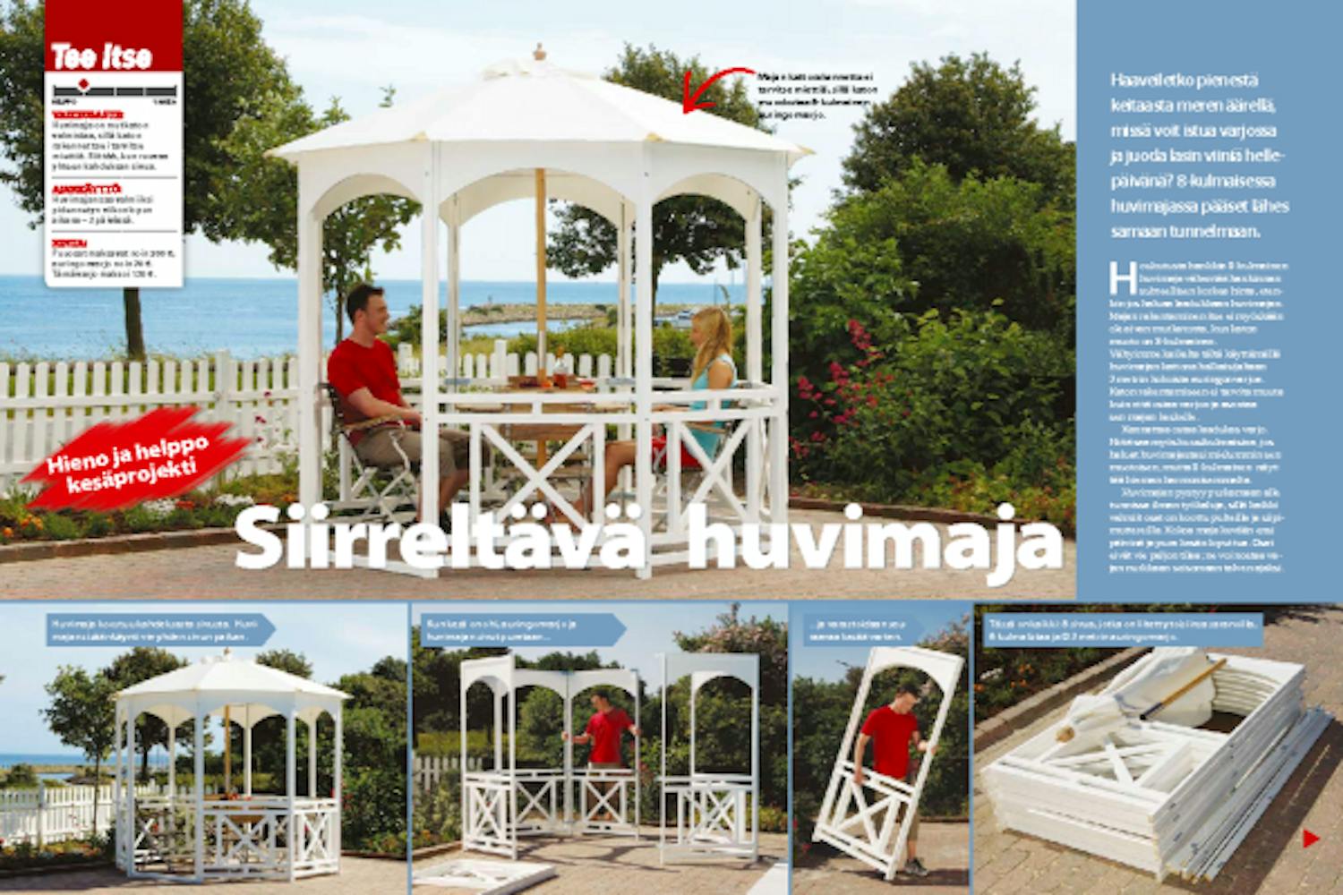 Huvimaja on mutkaton valmistaa, sillä katon rakennetta ei tarvitse miettiä. Riittää, kun ruuvaa yhteen kahdeksan sivua.