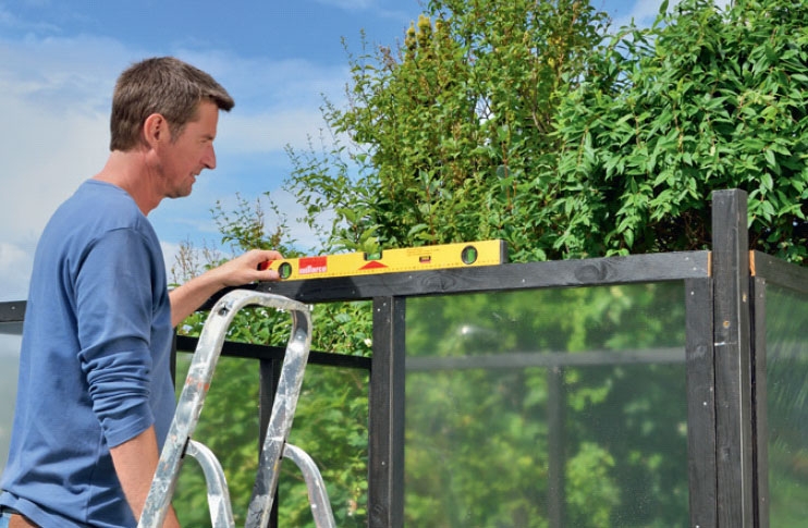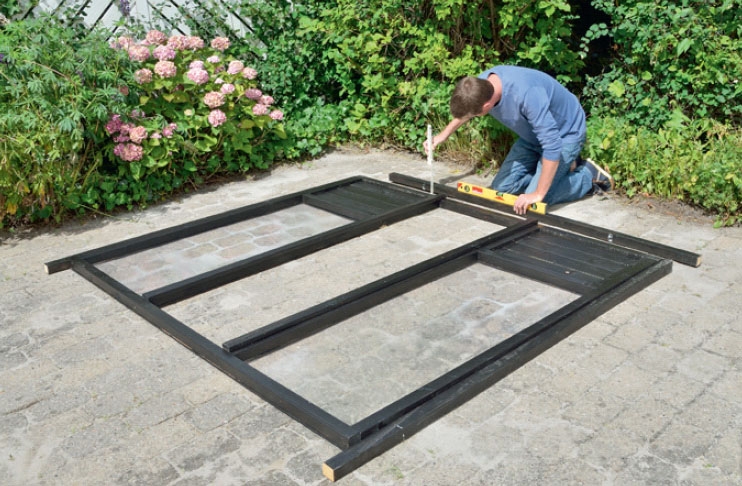 Tarkista alustan kaltevuus, jotta saat kasvihuoneen täysin vaateriin. Jos alusta viettää hieman, mittaa kaltevuuden määrä, jotta voit tarvittaessa kiilata kehikkoa kaltevalta sivulta.
