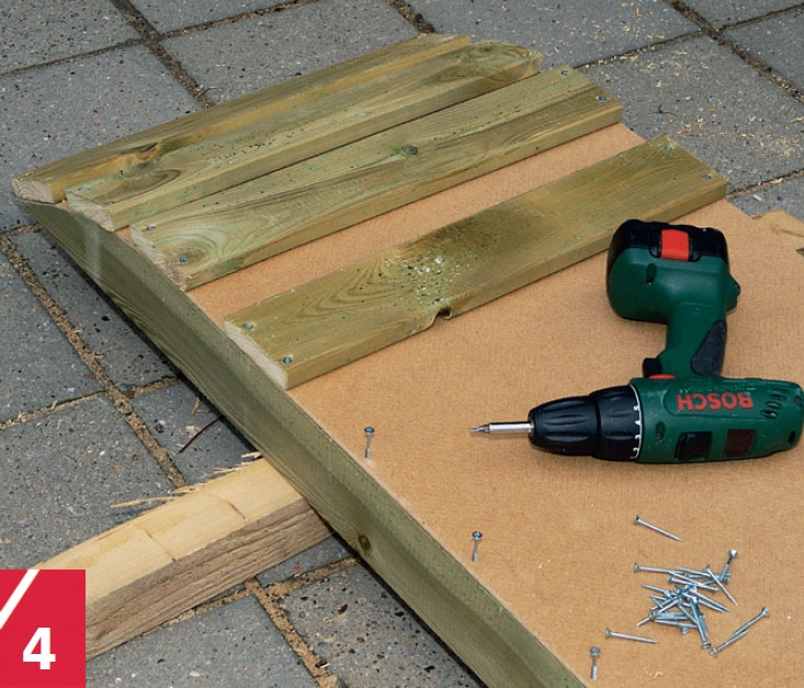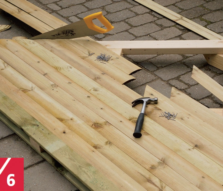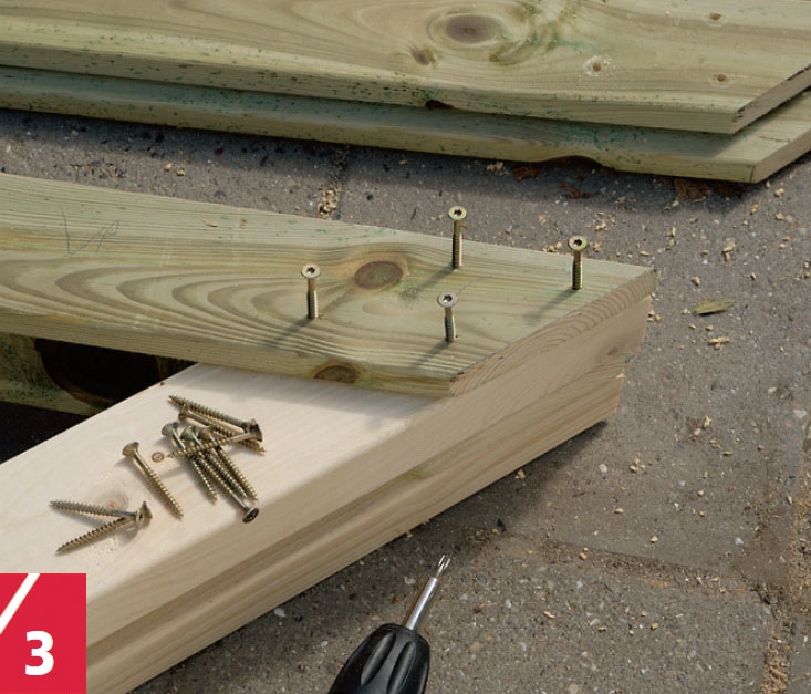 Ruuvaa tai naulaa loput laudoista kiinni liukukourun sivulautoihin 40 tai 50 mm ruuveilla tai nauloilla.