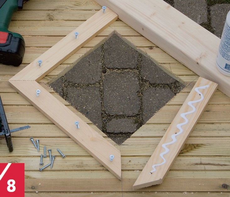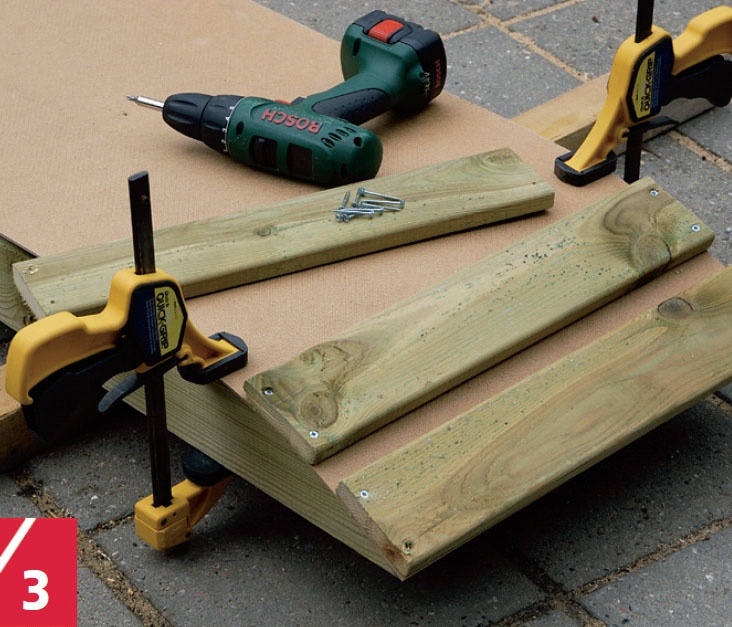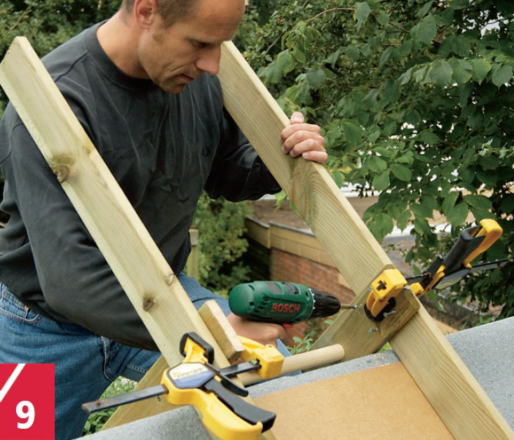 Kokoa tikkaat kiertämällä 50 mm ruuvit sivulautojen läpi jokaisen puolan päähän. Puolanreiät voi porata myös laudan läpi ja lukita puolat laudan syrjästä puolaan ulottuvalla nauloilla tai ruuveilla.